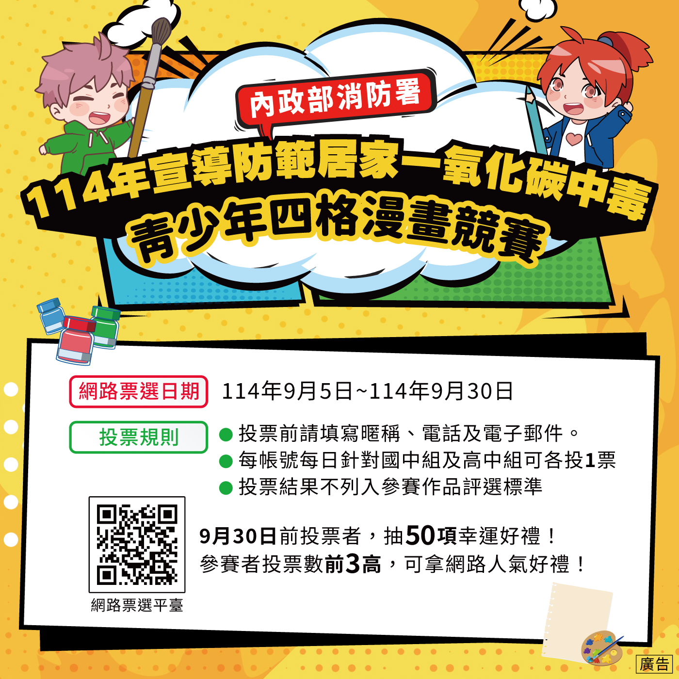 114年宣導防範居家一氧化碳中毒青少年四格漫畫競賽